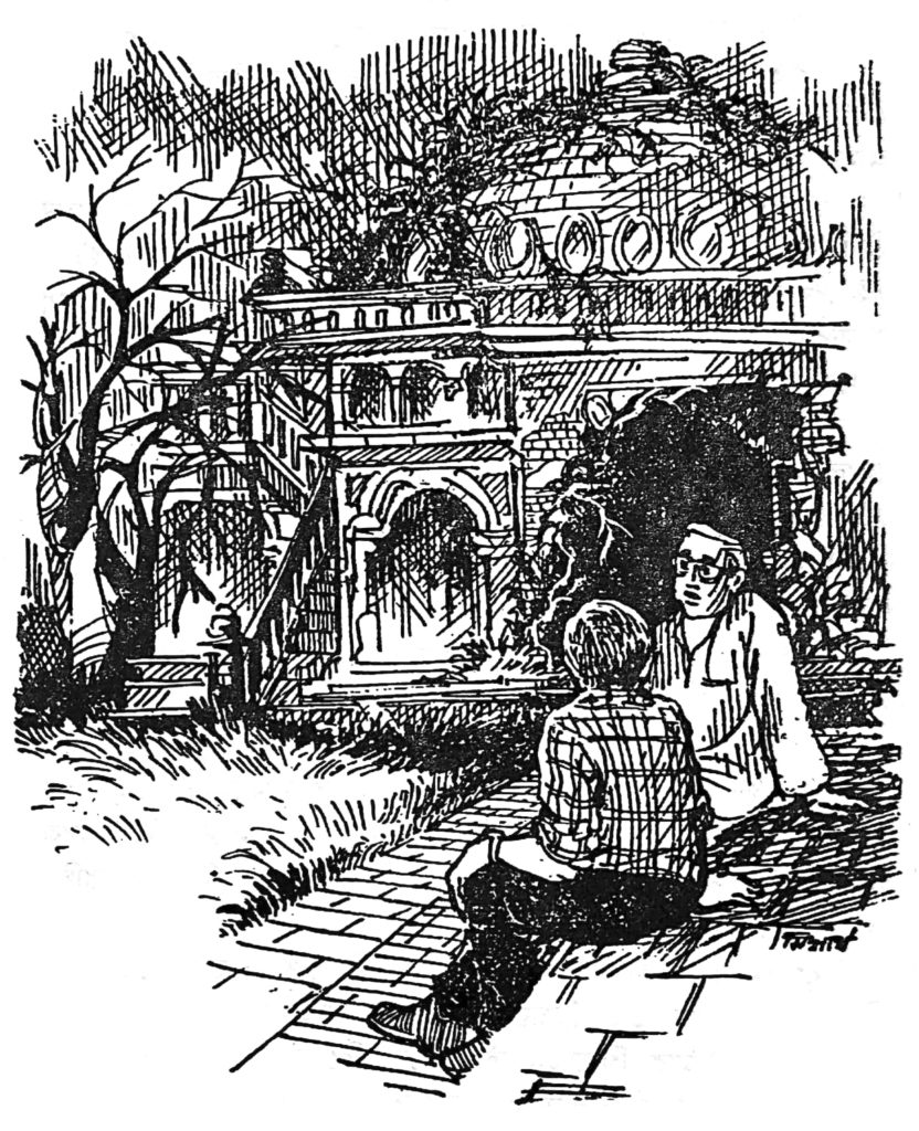 কতকগুলো বাচ্চা ছেলে দালানের মধ্যে লুকোচুরি খেলছিল। আমাদের দেখে ওরা দূরে সরে গিয়ে বিস্ময়ভরা চোখে আমাদের দিকে তাকিয়ে ছিল। আমরা বেরিয়ে যেতেই ওরা আবার খেলা শুরু করল।