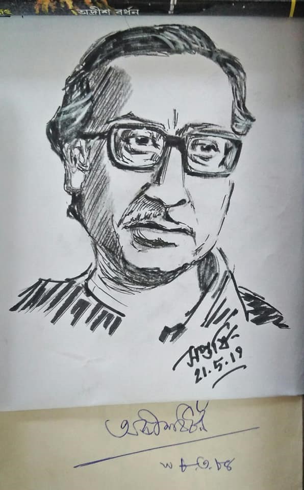 জুল ভের্ন-এর কাহিনিগুলো প্রথম বাংলা অনুবাদে পড়ার সুযোগ হয়েছিল তাঁর মাধ্যমে। তারপর যত দিন এগিয়েছে, হাতে এসেছে ‘ফ্যান্টাস্টিক’ সব লেখা! ‘কল্পবিজ্ঞান’ শব্দবন্ধটাই হয়তো সৃষ্টি হত না তিনি না থাকলে। প্রফেসর নাটবল্টু চক্র’র মত চরিত্র সৃষ্টি, বাংলা সাহিত্যে কল্পবিজ্ঞানকে শিখরে তুলে আনার পাশাপাশি লাভক্রফট সহ অজস্র বিদেশি সাহিত্যিকের রচনার সঙ্গে বাঙালি পাঠককে পরিচিত করিয়েছেন তিনি। বহুদিন ধরেই অসুস্থ ছিলেন সাহিত্যিক অদ্রীশ বর্ধন ।গতকাল রাতে তাঁর প্রয়াণে যেন একটি যুগের অবসান ঘটল। শ্রদ্ধা জানাই তাঁকে স্মরণ করে, সংগ্রহে থাকা তাঁর লেখা ও সম্পাদিত বেশ কিছু বইয়ের মধ্যে একটিতে পেয়েছিলাম স্বয়ং তাঁর স্বাক্ষর! কলেজস্ট্রীট ফুটপাথ থেকেই সংগৃহীত। সেইসব আর একটি স্কেচের মাধ্যমে জানালাম আমার বিনম্র শ্রদ্ধাঞ্জলি।