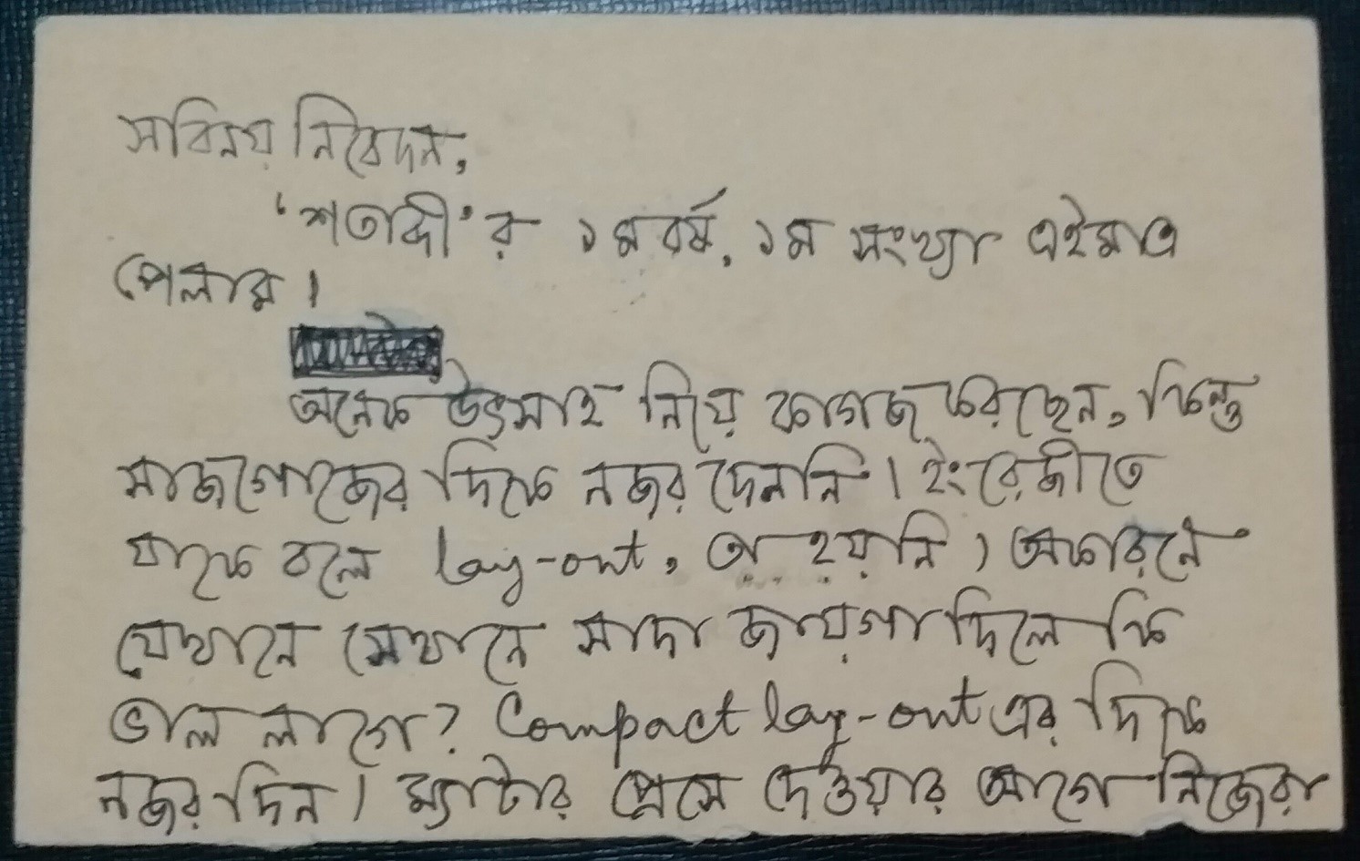 এই চিঠি গুলো পড়লেই বোঝা যায়– লিটিল ম্যাগাজিনের সম্পাদক ও লেখকদের প্রতি তাঁর ছিল কী গভীর ভালোবাসা, কতটা যত্ন নিয়ে পড়তেন লিটিল ম্যাগাজিনগুলি ।