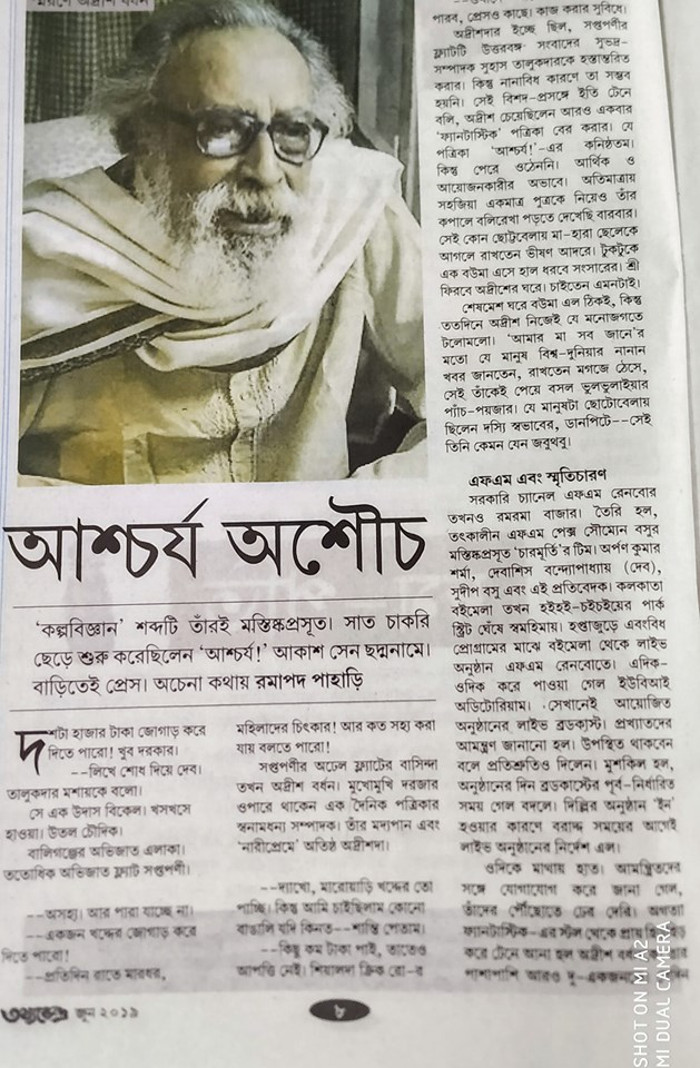 ভারতের প্রথম কল্পবিজ্ঞান-পত্রিকা ‘আশ্চর্য’ প্রকাশ পেয়েছিল তাঁর হাত ধরেই। এরপর ‘ফ্যানটাসটিক’ পত্রিকার সম্পাদনা শুরু করেন। সাহিত্যভিত্তিক এই দু’টি পত্রিকাই একসময়ে প্রবল জনপ্রিয়তা লাভ করেছিল। লিখতেন বহু নামীদামি সাহিত্যিকরা। তবে, সোমবার গভীর রাতে নিভে গেল সেই ‘আশ্চর্য’ প্রদীপশিখা।