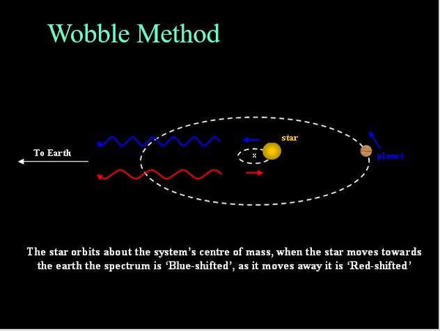 তা হলে দেখা যাচ্ছে যে এই ডপলার সরণ থেকে আমরা কোনও তারার রেডিয়েল ভেলসিটি বা তারাটা আমাদের পৃথিবীর দিকে এগিয়ে আসছে না দূরে সরে যাচ্ছে আর কী গতিতে আসছে বা যাচ্ছে তার হিসেব পেতে পারি। এবার যদি কোনও তারাকে দেখা যায় সে তার ভরকেন্দ্রর চারপাশে পাক খাচ্ছে তা হলে বুঝতে হবে কোনও গ্রহজাতীয় বস্তু তারাকে কেন্দ্র করে ঘুরছে আর তা ধরা যাবে তারার আলোর বর্ণালির ডপলার সরণ থেকে। ঘূর্ণনকালে তারা পর্যায়ক্রমে একবার পৃথিবীর দিকে এগিয়ে আসবে আবার দূরে সরে যাবে যা ব্লু-শিফট ও রেড-শিফটের পর্যায়ক্রম পরিবর্তন থেকে বোঝা যাবে (চিত্র ২)। যেগুলো আমাদের বৃহস্পতির চেয়েও অনেক বড় গ্রহ সেগুলোর তারাকে আকর্ষণের শক্তিও বেশী – তাই তাদের ক্ষেত্রে ডপলার সরণের পরিমাপ করা কঠিন নয় কিন্ত যেগুলো ছোট ছোট গ্রহ তাদের ক্ষেত্রে খুব সূক্ষ্ম ও অত্যন্ত সঠিক স্পেক্ট্রোস্কোপিক পরিমাপের প্রয়োজন। এই পদ্ধতিতে তারাদের রেডিয়াল ভেলসিটি মেপে অসৌরগ্রহদের কক্ষীয় পর্যায়কাল মাপা সম্ভব হলেও গ্রহদের ভর সম্বন্ধে কোনও নির্ভুল পরিমাপ করা যায় না শুধু একটা ধারণা করা যেতে পারে।