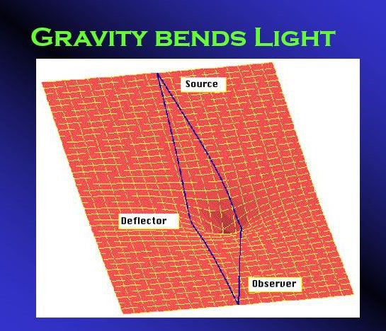 চিত্র – ৪ মাধ্যাকর্ষণ জনিত আলোর পথ-বিচ্যুতি