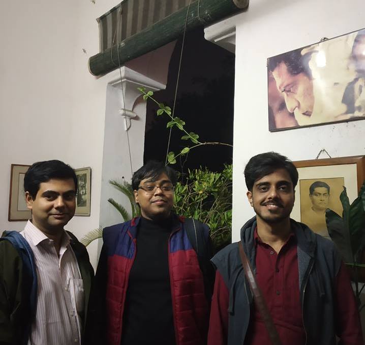 রায় বাড়ির সেই বিখ্যাত বারান্দায় আমরা তিনজন (বাঁদিক থেকে সন্দীপন, দীপ আর অরুণাভ)