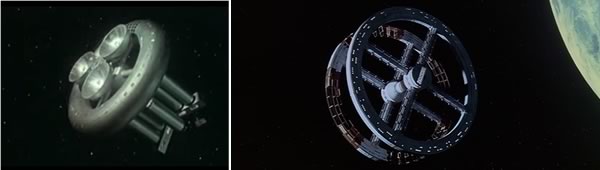 পাশাপাশি ফ্রেমে ‘Road to the Stars’ (1958) আর আইকনিক ‘2001: A Space Odyssey’ (1968) ছবিগুলোতে দেখানো মহাকাশযানের দৃশ্য