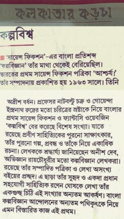 এবারে বাংলার একমাত্র কল্পবিজ্ঞান পত্রিকার থিম – অদ্রীশ বর্ধন। যে মানুষটির মাথা থেকে বেরিয়েছিল “কল্পবিজ্ঞান” শব্দটি, ছয়ের দশকে বাংলা কল্পবিজ্ঞানকে নতুন পথ দেখানো সেই মানুষটাকে নিয়েই আমাদের নতুন সংখ্যা।