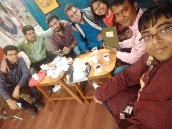 | বাংলা কল্পবিজ্ঞান নিয়ে তৈরি হচ্ছে দ্বিভাষিক তথ্যচিত্র। আজ ডাক পড়েছিল টিম ‘কল্পবিশ্ব’-র। ক্যামেরা আছে সেকথা বেমালুম ভুলে কাপের পর কাপ চা-কফি আর চিপস সহযোগে আমরা দেদার আড্ডা দিলাম বাংলা কল্পবিজ্ঞানের একাল-সেকাল নিয়ে। দারুণ কাটল সময়টা। শ্যুটিং হল সুলেখার ‘ক্যাফে কবীরা’তে। |